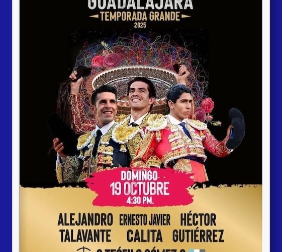 La decimonovena corrida de la temporada 2025 en El Nuevo Progreso de Guadalajara a celebrarse el próximo domingo 19 de Octubre, servirá de marco para la repetición de Ernesto Javier Calita después de su triunfal actuación del pasado 28 de septiembre, así como la presentación del diestro hispano Alejandro Talavante y la joven promesa hidrocálida, Héctor Gutiérrez, a quien ya le urge consolidarse porque posee argumentos y el tiempo pasa. Un cartel de interés y que puede resultar importante. El festejo dará inicio a las 16:30 horas.