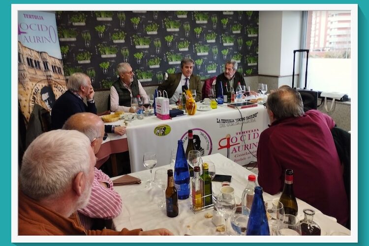 En tarde lluviosa y fría y lleno en la sala, hemos recibido la visita aquí en el Cocido Taurino Saleri ll de Guadalajara al ganadero, Francisco Javier Araúz de Robles, familia oriunda de Molina de Aragón con la finca, Dehesa de la Vega de Arias en el término municipal del Tierzo (Guadalajara), finca en la que primeramente estuvo ubicada la ganadería que más tarde bajarían a la provincia de Jaén concretamente a Sierra Morena, dentro del Parque Natural de la Sierra de Andújar.