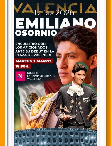 Emiliano Osornio estará acompañado por su apoderado, el histórico matador de toros Curro Vázquez, que ha asumido esta temporada la gestión de su carrera y será figura clave en su desarrollo profesional. El acto, de acceso libre hasta completar aforo, incluirá una charla-coloquio con intervención del público, reforzando el vínculo directo entre el torero y la afición valenciana en uno de los momentos más importantes de su carrera.