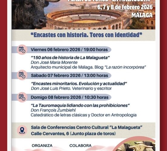 Estos serán los actos de Asociación de Presidentes en La MalaguetaAlejandro Lima El Mojito y su incontestable lucha tiene próximas fechasGuadalajara: Quedó reseñado el encierro para la corrida del 1 de febrero.El valor de ser un “Armillita”Guillermo Hermoso de Mendoza convive con medios de comunicación en Guadalajara.Julio Norte, al Circuito de Novilladas de Andalucía 2026La Comunidad de Madrid en contra de la prohibición de los niños en los toros en palabras de su Consejero Carlos NovilloEl reportaje de Muriel Feiner… La tertulia del Excmo. Conde de Colombí rindió homenaje al gran artista Fernando CorellaGuillermo Hermoso de Mendoza: «Vuelvo a la Nuevo Progreso con el corazón fortalecido y estilo propio»Sanlúcar la Mayor se reencuentra con la Fiesta de los TorosL’Observatorie National des Cultures Taurines y su postura contra el nuevo ataque prohibicionista contra los niñosCartel de lujo para el 7 de marzo en ApizacoFeria Toro presenta una interesante cartel de rejones para el 15 de marzo en Val’QuiricoEl Comentario de Paco Quirarte… en el 2º festejo, Villa Carmela y Campo Real, el gran compromisoDiego Ventura y Lances de Futuro no llegan a un acuerdo para la Feria de Abril‘Hurón’, de Juan GuardiolaEl crimen contra el toreo del pliego-subasta de Zaragoza: obliga a presentar en febrero la Feria del PilarCarteles no oficiales de Sevilla 2026: así será el primer abono maestrante de José María GarzónEl festival de Valero de la Sierra, aplazado al sábado por la lluviaNicolás Nicolás Fraile, ganadero de Valdefresno:‘Tengo preparados ocho cinqueños para ir a Madrid este año’