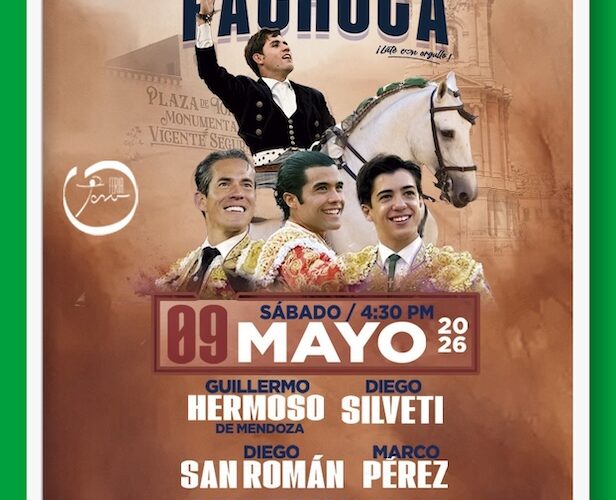La empresa Feria Toro que preside el licenciado José Luis Alatorre, anunció un nuevo cartel a celebrarse el 9 de Mayo en la plaza Monumental de Pachuca Vicente Segura. El festejo dará inicio a las 16:30 horas.