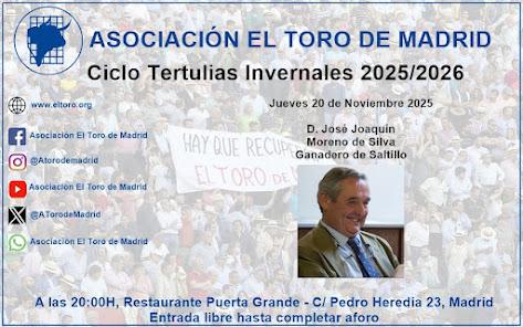 HOY D. JOSÉ JOAQUIN MORENO DE SILVA EN LAS TERTULIAS INVERNALES DE LA ASOCIACION EL TORO DE MADRID