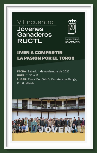 La RUCTL anima a todos los jóvenes ganaderos a asistir y participar activamente en este espacio de diálogo, colaboración e innovación, que busca fortalecer el futuro de la ganadería de bravo en España.